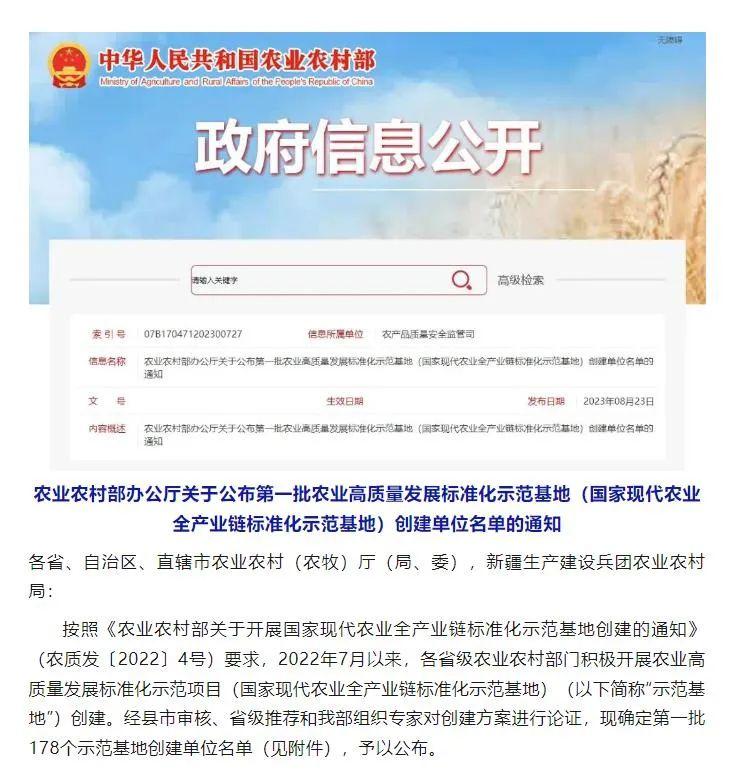 近日,農(nóng)業(yè)農(nóng)村部發(fā)布了《農(nóng)業(yè)農(nóng)村部辦公廳關(guān)于公布第一批農(nóng)業(yè)高質(zhì)量發(fā)展標(biāo)準(zhǔn)化示范基地(國家現(xiàn)代農(nóng)業(yè)全產(chǎn)業(yè)鏈標(biāo)準(zhǔn)化示范基地)創(chuàng)建單位名單的通知》,嘉立荷牧業(yè)公司榜上有名。