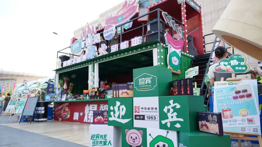 作為市集中的另一大亮點,以紅綠撞色為主體思路,采用現(xiàn)代集裝箱風格,頂部設(shè)置“烤腸”造型,與本次市集迎賓的主打新品“爆肉脆烤腸系列”前后呼應(yīng),4種口味滿足大眾味蕾。歌手每日演出精彩不停,讓消費者在音樂中享受美食,游戲區(qū)和休閑區(qū)等多個打卡點吸引消費者眼球。此外,迎賓與百事攜手聯(lián)名打造了跨界不越界的冰火效果,提高了迎賓的品牌知名度,迎賓與百事將以此為契機,穩(wěn)步推進深度合作。