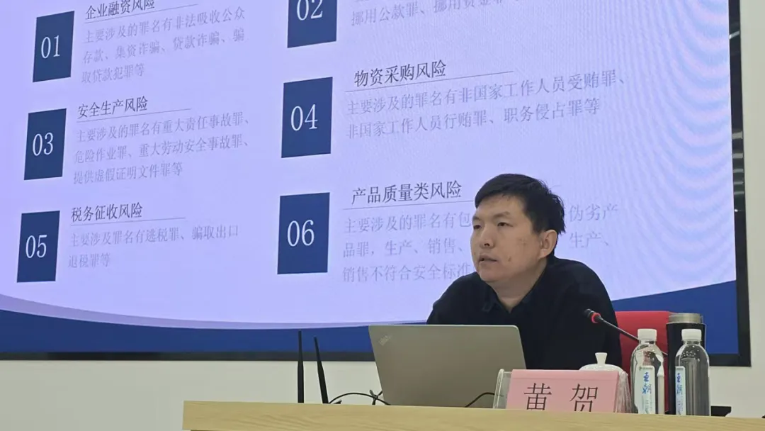 為不斷強化集團系統(tǒng)干部職工法治思維,提升合規(guī)經(jīng)營意識,提高風(fēng)險防控能力,筑牢預(yù)防刑事犯罪堅實防線,今天下午,集團法務(wù)部、紀(jì)檢監(jiān)察一室、紀(jì)檢監(jiān)察二室聯(lián)合王朝公司組織召開“預(yù)防刑事犯罪專題培訓(xùn)會”。集團所屬各企事業(yè)單位紀(jì)檢監(jiān)察組織主要負(fù)責(zé)同志、總法律顧問,法務(wù)與紀(jì)檢監(jiān)察部門相關(guān)工作人員共計100余人參會。