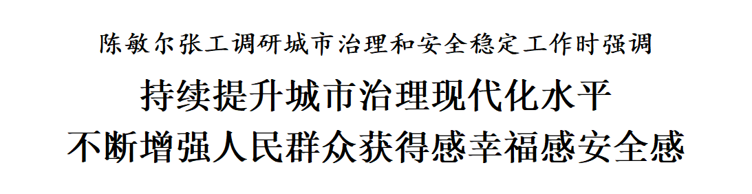 陳敏爾、張工在調(diào)研中強調(diào),要認真學習貫徹習近平總書記在中央城市工作會議上的重要講話精神,深入落實習近平總書記視察天津重要講話精神,踐行人民城市理念,強化黨建引領(lǐng)基層治理創(chuàng)新,深化大城細管、大城智管、大城眾管,著力提升城市治理現(xiàn)代化水平,不斷增強人民群眾獲得感、幸福感、安全感。圍繞籌備上合組織峰會,在周全安全上下功夫,強化問題導向、目標導向、結(jié)果導向,提升執(zhí)行力,把握時度效,落實工作方案,完善應(yīng)急預案,健全工作體系,優(yōu)化指揮調(diào)度機制,全鏈條推動各項任務(wù)有序開展。堅持點線面網(wǎng)相結(jié)合,抓好社會面整體防控,強化風險隱患源頭治理,建好管好用好綜治中心,發(fā)展壯大群防群治力量,加強網(wǎng)格化服務(wù)管理,深化矛盾糾紛多元化解,完善城市運行保障和應(yīng)急管理體系,嚴格落實安全生產(chǎn)責任制,有力保障全市域、全時段、全要素安全。深化道路交通綜合治理,加強交通組織和疏導,持續(xù)提升交通態(tài)勢感知力、交通擁堵疏解力、交通事件反應(yīng)力,確保道路交通安全暢通。提高信訪工作法治化水平,完善思路舉措,注重分類指導,提升信訪干部的群眾工作能力、法律政策水平,增強信訪工作實效,更好維護群眾合法權(quán)益、服務(wù)全市工作大局。
