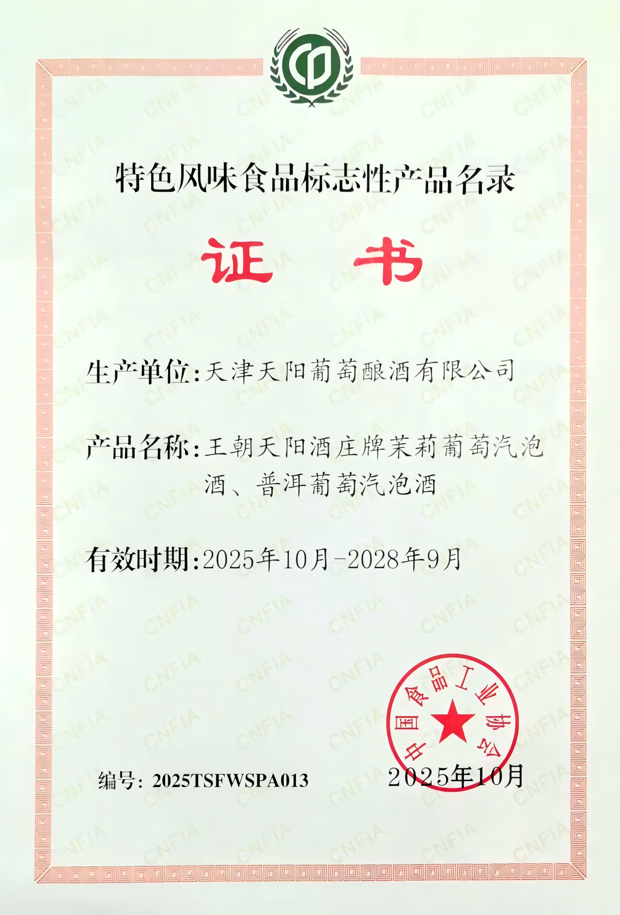 王朝天陽酒莊兩款茶酒入選國家級(jí)特色風(fēng)味食品名錄