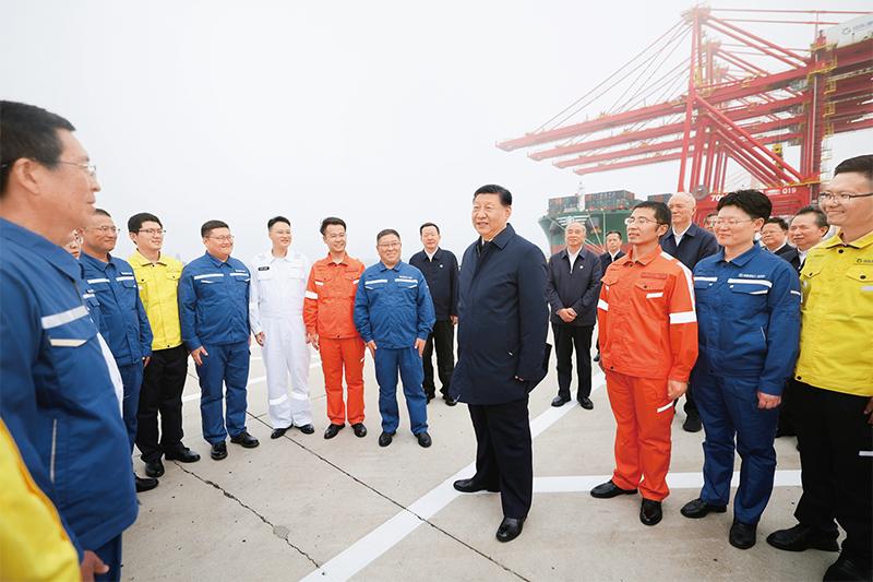 2024年5月22日至24日,中共中央總書記、國家主席、中央軍委主席習近平在山東考察。這是22日下午,習近平在日照港親切慰問港口科技工作者、運營人員、航運人員。 新華社記者 鞠鵬/攝