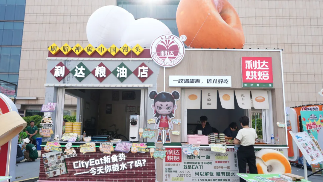 展區(qū)主要展示利達主食與利達烘焙兩個系列產(chǎn)品,結(jié)合年輕主題,搭建了以“饅頭-中國刷脂神器”為主題的互動打卡點,設(shè)立打卡贈送“漆畫扇”活動,更好地向年輕群體宣傳了利達品牌,打破消費者對利達的固有認知,和年輕的消費群體展開友好的交流,為消費者提供多“young”性的優(yōu)質(zhì)碳水選擇。此外,結(jié)合夜市消費場景,新研發(fā)的利達花樣主食土豆、紫薯、香煎肉花卷、利達鍋巴菜貝果等,一經(jīng)推出,立即成為市集的網(wǎng)紅產(chǎn)品,深受消費者喜愛。