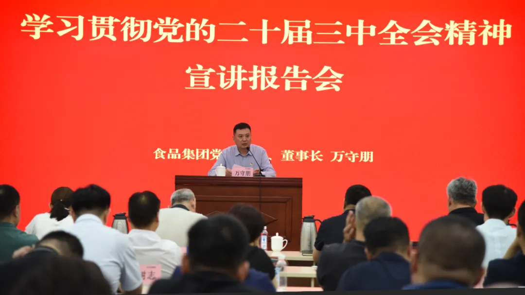 報(bào)告會(huì)上,萬(wàn)守朋緊緊圍繞習(xí)近平總書記在黨的二十屆三中全會(huì)上的重要講話和全會(huì)《決定》,深入宣講了黨的二十屆三中全會(huì)的重大意義,深刻闡釋了進(jìn)一步全面深化改革的指導(dǎo)思想、總目標(biāo)和重大原則,并對(duì)《決定》提出的關(guān)于深化國(guó)資國(guó)企改革的重大舉措談了認(rèn)識(shí)體會(huì),對(duì)食品集團(tuán)切實(shí)抓好各項(xiàng)改革任務(wù)的貫徹落實(shí)進(jìn)行了深刻思考和詳細(xì)解讀。