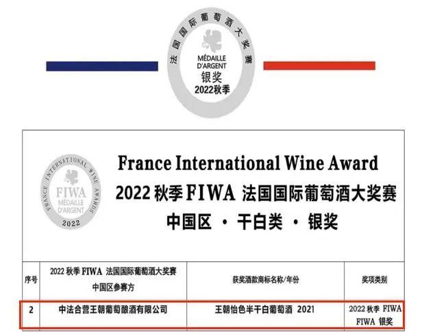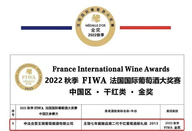 日前,2022秋季FIWA法國國際葡萄酒大獎賽中國區(qū)獲獎酒款名單發(fā)布,王朝旗下王朝七年藏釀品第二代干紅葡萄酒獻禮版(2013)、王朝怡色半干白葡萄酒(2021)兩款核心產(chǎn)品分別斬獲金、銀兩項大獎。獎項的獲得不僅代表國際上對王朝產(chǎn)品品質(zhì)的認(rèn)可,更提振了公司士氣,堅定了發(fā)展信心。