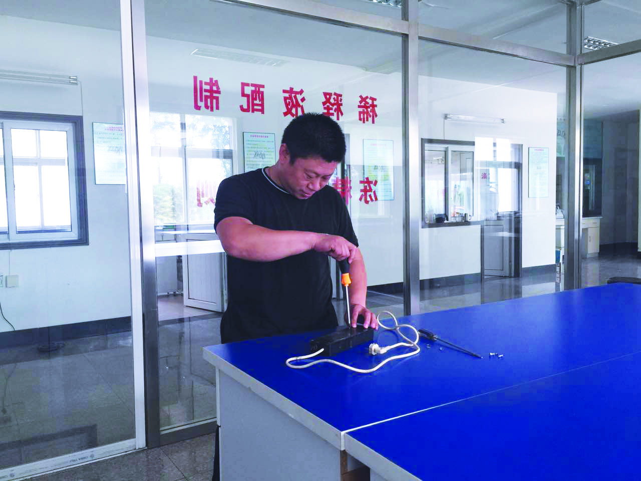 在搬遷過程中給人記憶最深的一件事就是其中一頭小公牛由于長途運(yùn)輸,造成應(yīng)激反應(yīng),不能站立,他蹲下身子讓同事幫忙將小公牛放在背上,將100多斤重的小公牛背到牛棚并立刻進(jìn)行應(yīng)急處理。他就是這樣一個(gè)不怕臟,不怕苦,為工作甘于奉獻(xiàn)的人。在他的鼓舞下,僅用了短短的三天時(shí)間,就完成了采精所用設(shè)施的制作,調(diào)試?yán)鋬鼍簝x器設(shè)備等一系列準(zhǔn)備工作。在搬遷中他充分發(fā)揮黨員的帶頭作用,作為一名黨員他身先士卒、主動(dòng)作為。