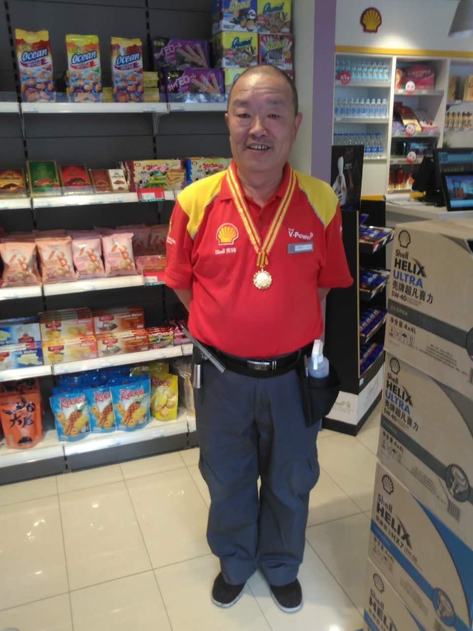 2001年-2002年,在殼牌開展為期六個季度服務標兵評選活動中,每一階段,王師傅均被評為服務標兵。曾有一次, 殼牌中國的同事來到白堤路油站參觀,交流之余問起王師傅:“您身邊的同事要是情緒不好是不是會影響到您。”老師傅很自信的說:“不可能,只有我能影響別人,別人不會影響到我。”王師傅就是這么自信,他始終會把他良好的工作狀態(tài)一直傳遞給身邊的每一位同事,正是由于年復一年、日復一日的努力工作使其獲得了“2015殼牌全球微笑之星”的榮譽稱號,并作為中國員工代表到日本參加全球盛典,接受殼牌授予的最高榮譽。