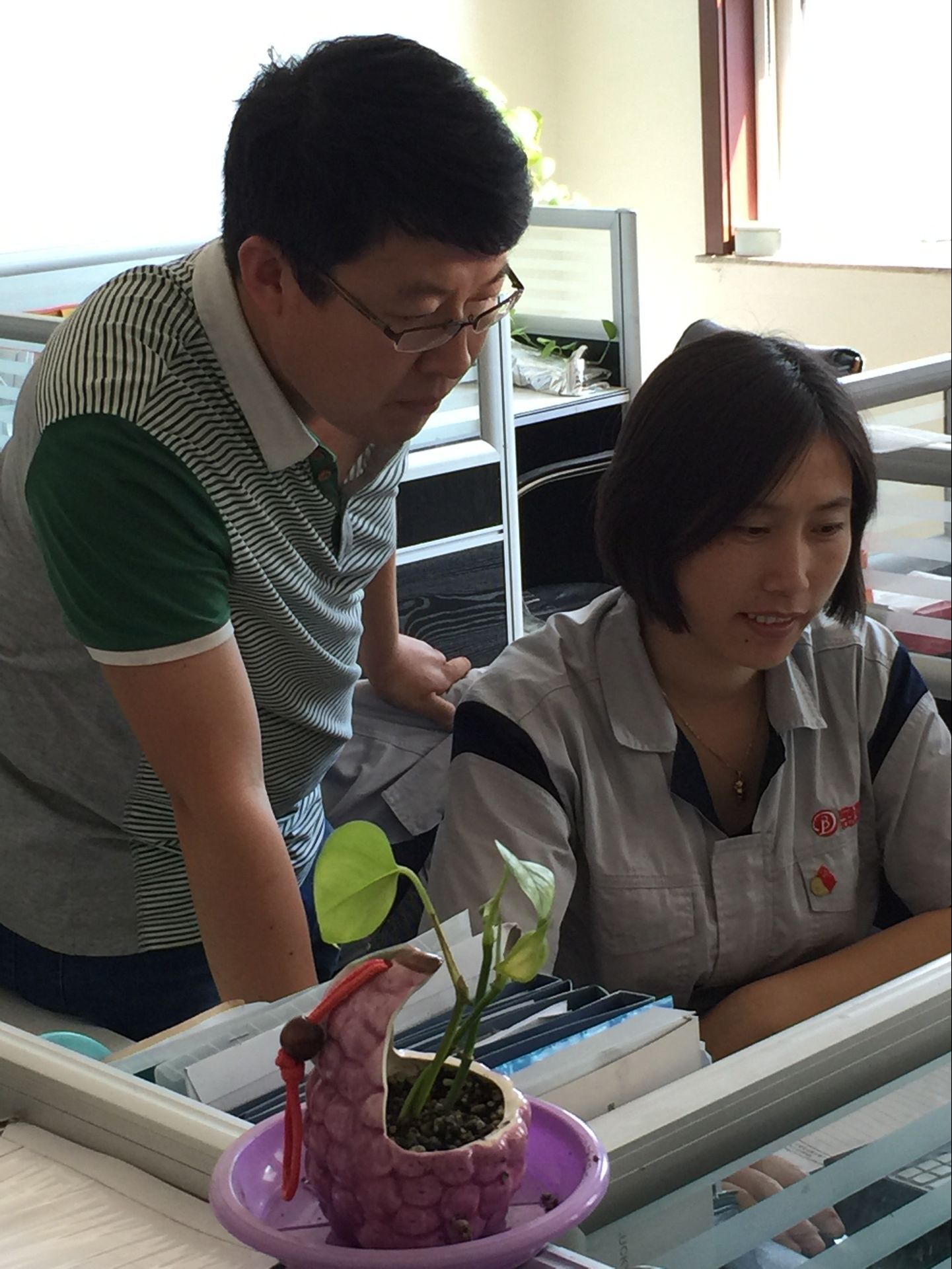 “宮姐,我要充飯卡”、“宮姐,幫我領(lǐng)一支筆”、“宮姐,有兩位新入職的員工,你帶領(lǐng)他們熟悉一下公司環(huán)境”、“宮姐,聯(lián)系一下打印機(jī)維修公司,打印機(jī)出故障了......”早上七點半,在寶德公司辦公室里,辦公室主任宮鳳賢開始了一天既瑣碎又忙碌的工作。只見她面帶笑容,和顏悅色,跟大家打招呼的同時,熟練利索地幫助每位同事解決問題。雖然,她也是一名80后,但是大家都喊她“宮姐”。