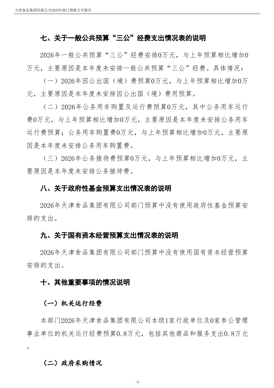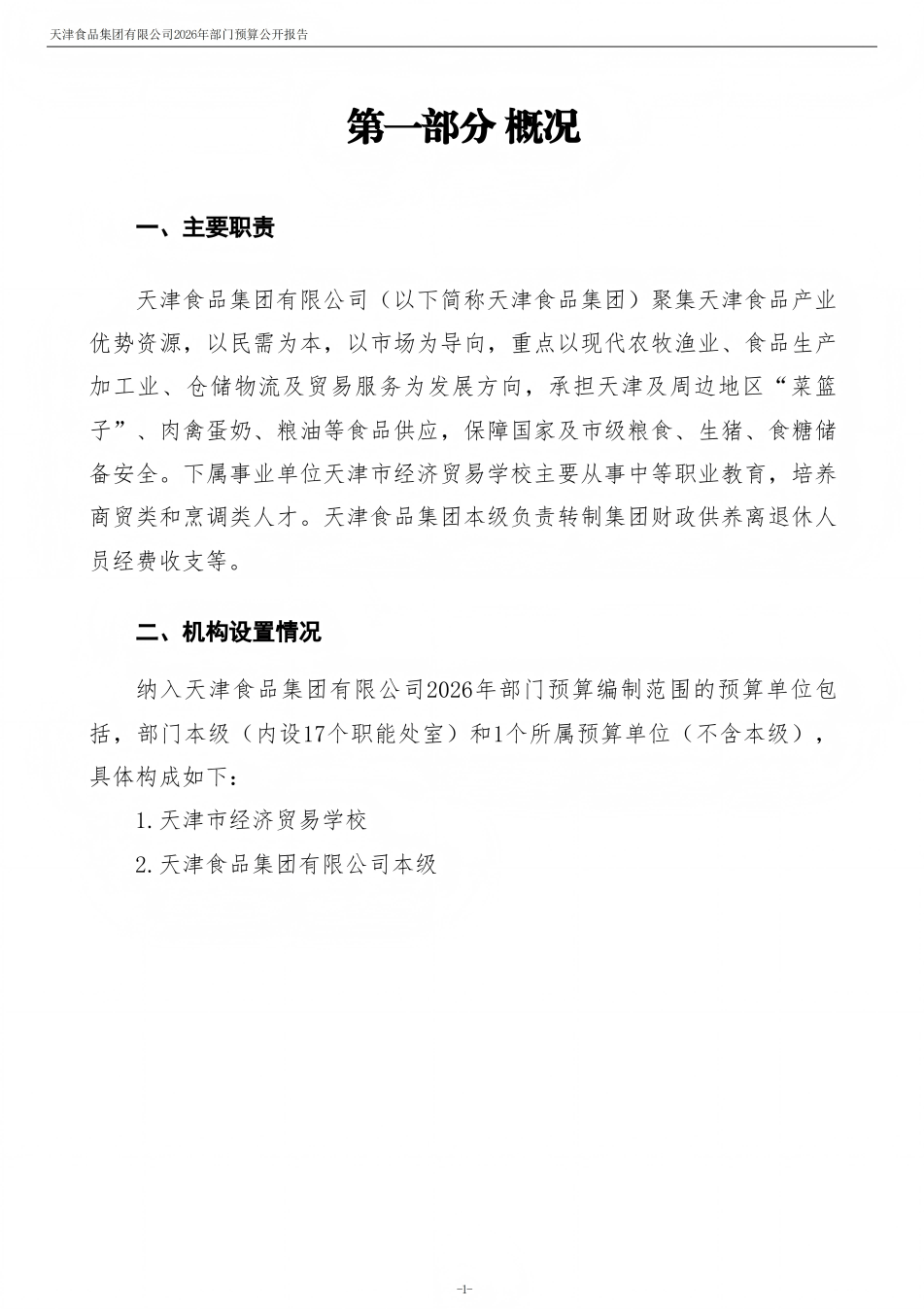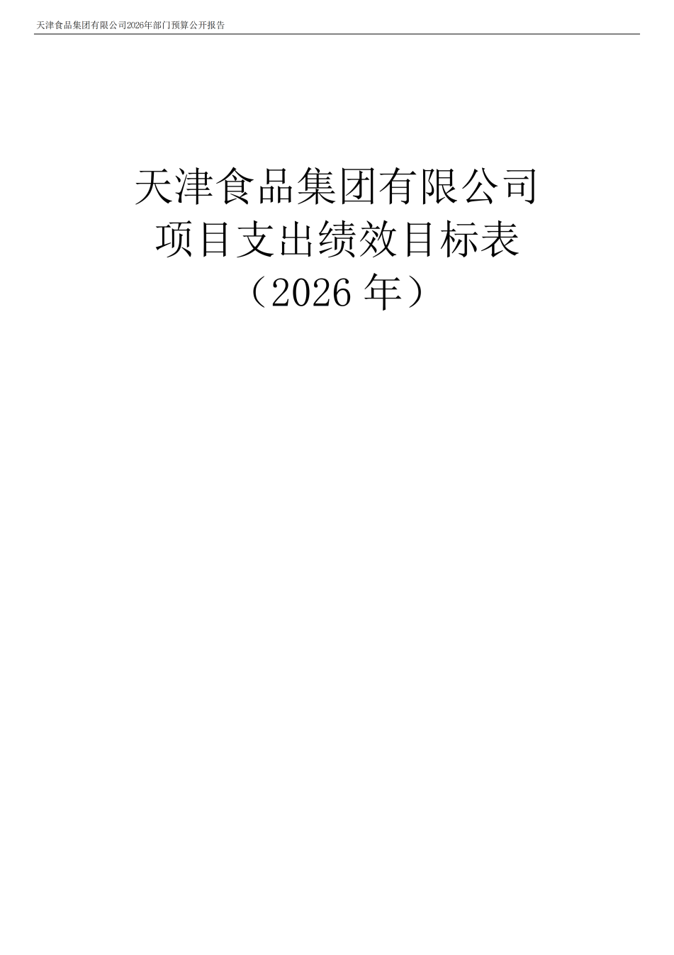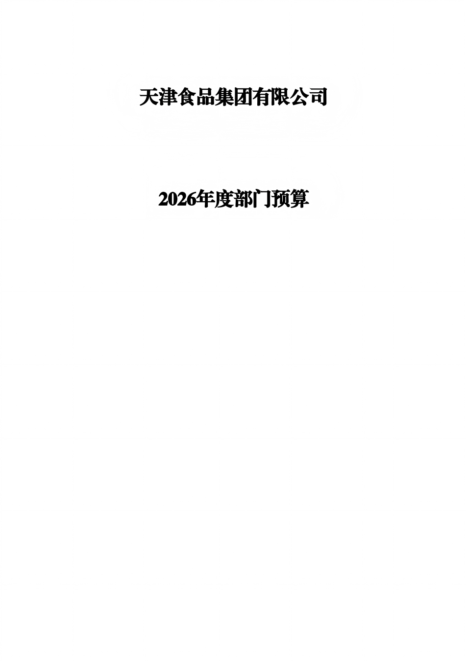 天津食品集團有限公司2026年度部門預算