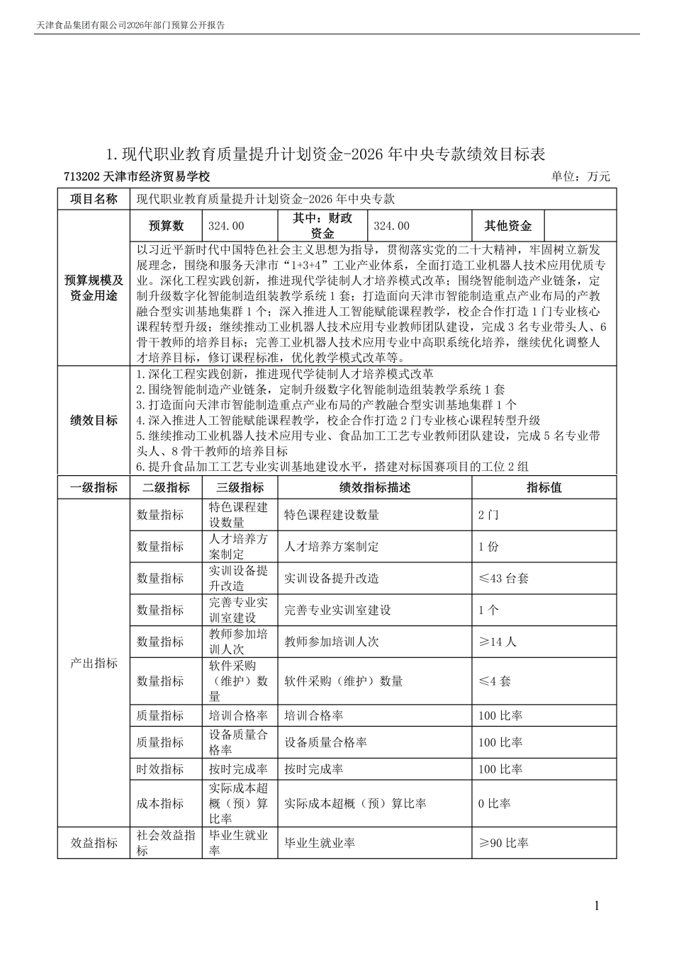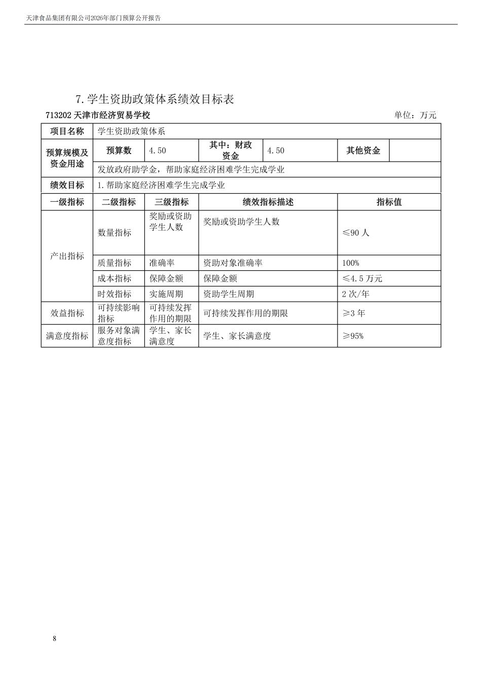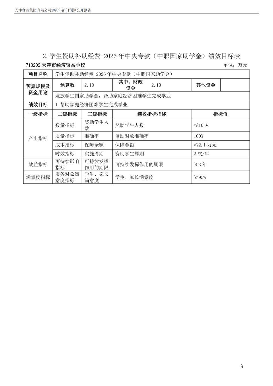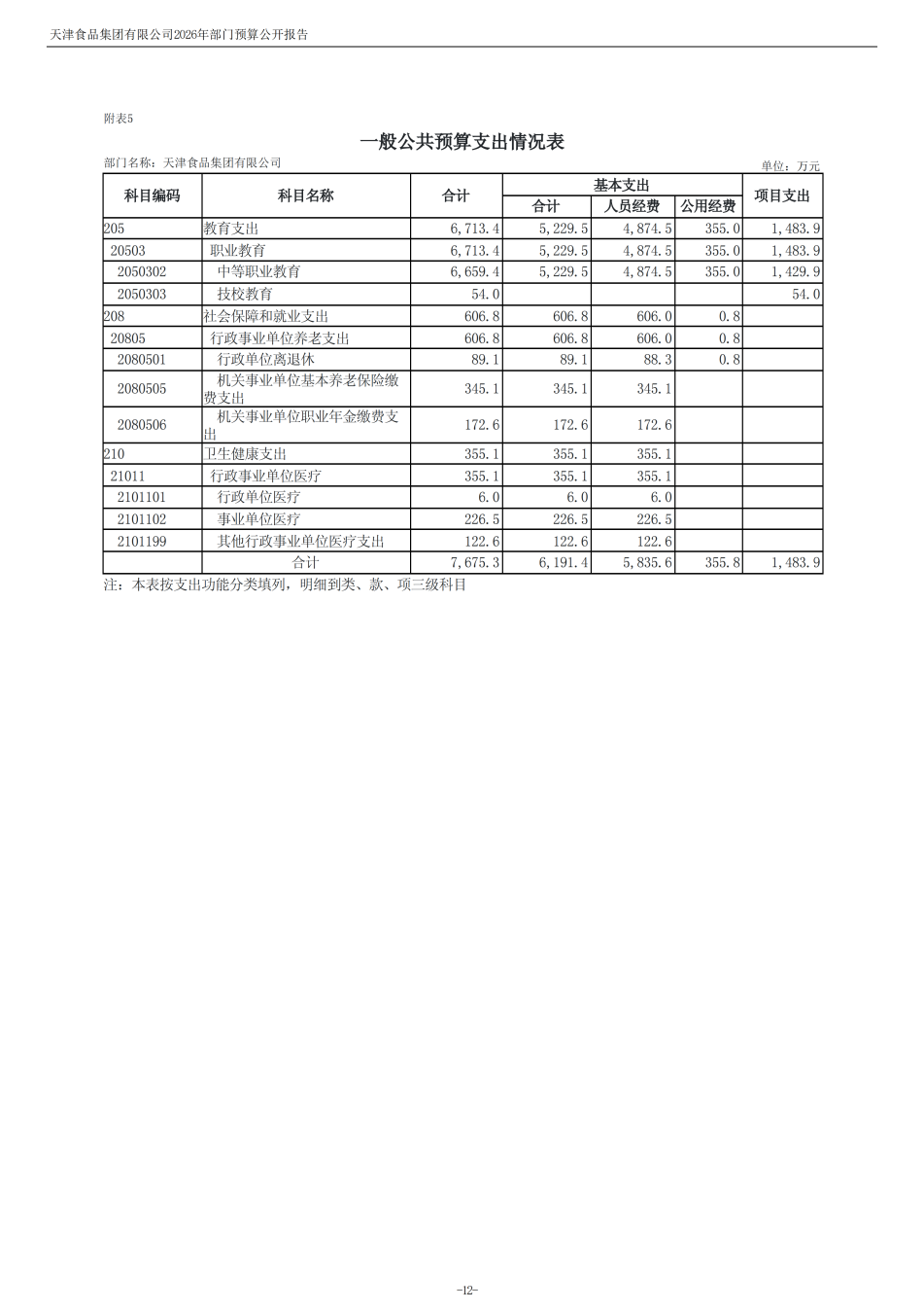 天津食品集團有限公司2026年度部門預算
