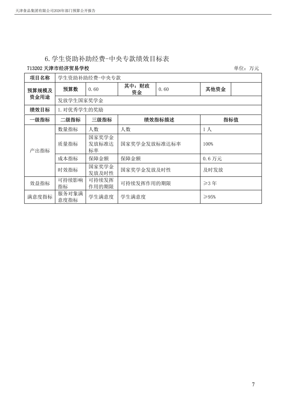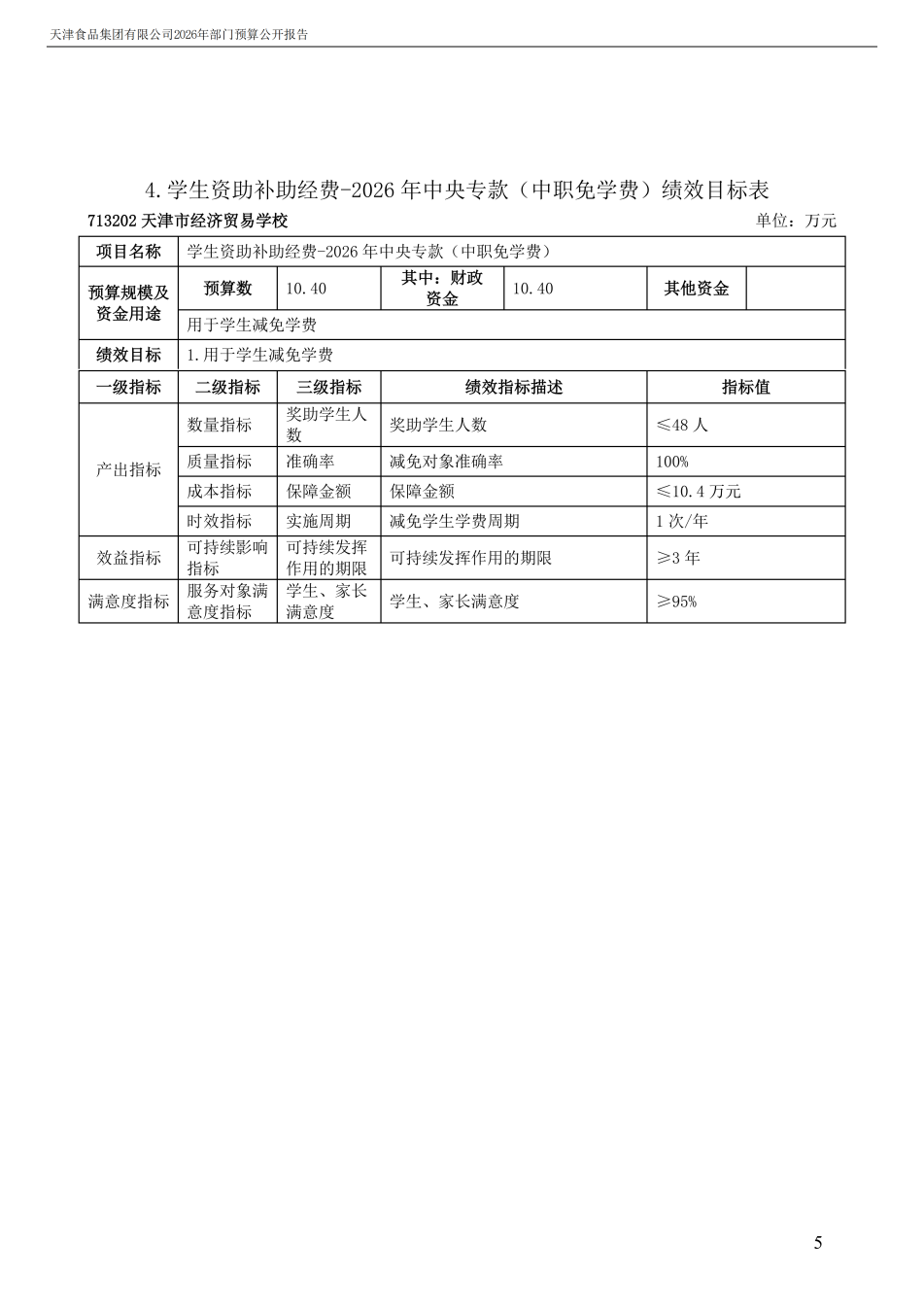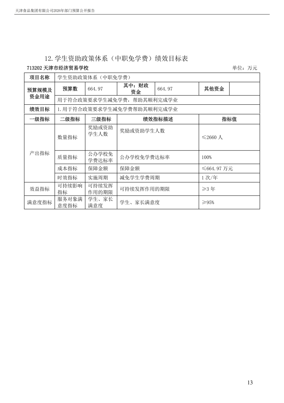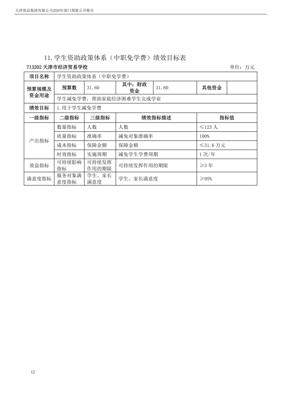 天津食品集團有限公司2026年度部門預算