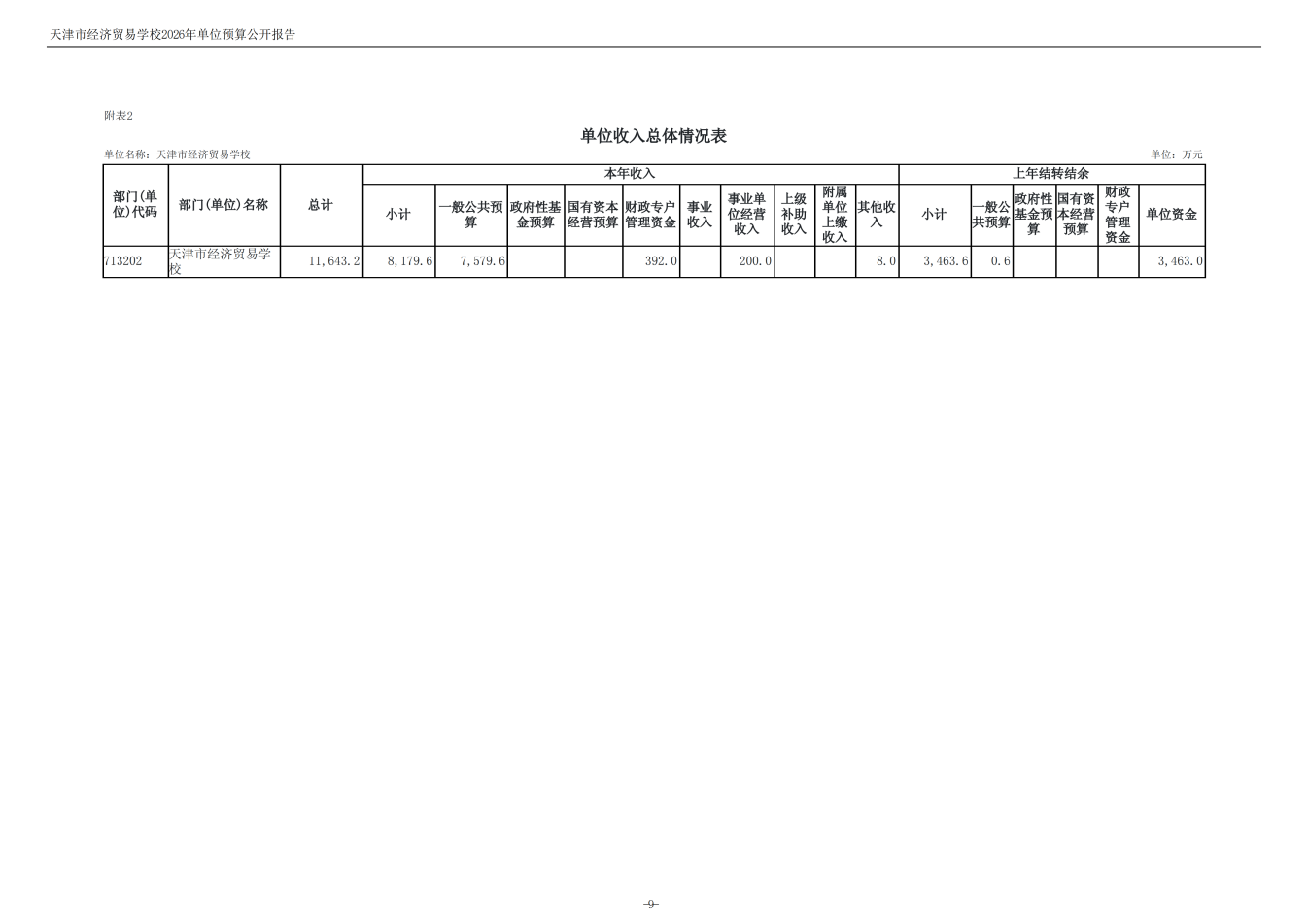 天津市經(jīng)濟(jì)貿(mào)易學(xué)校2026年度單位預(yù)算